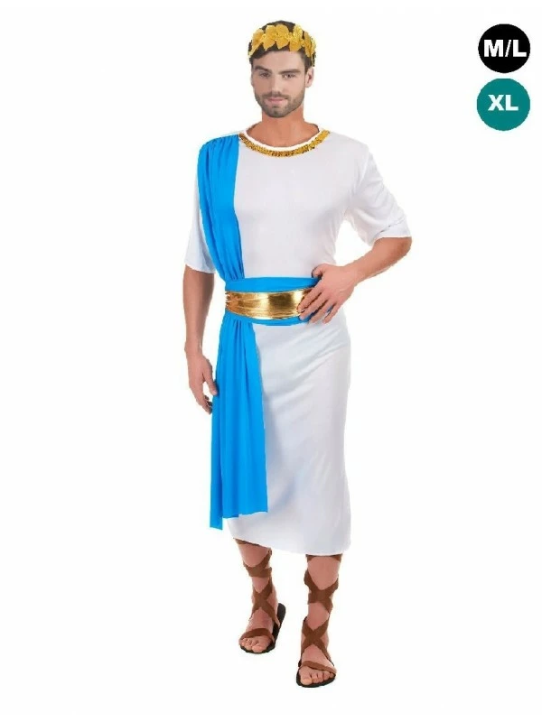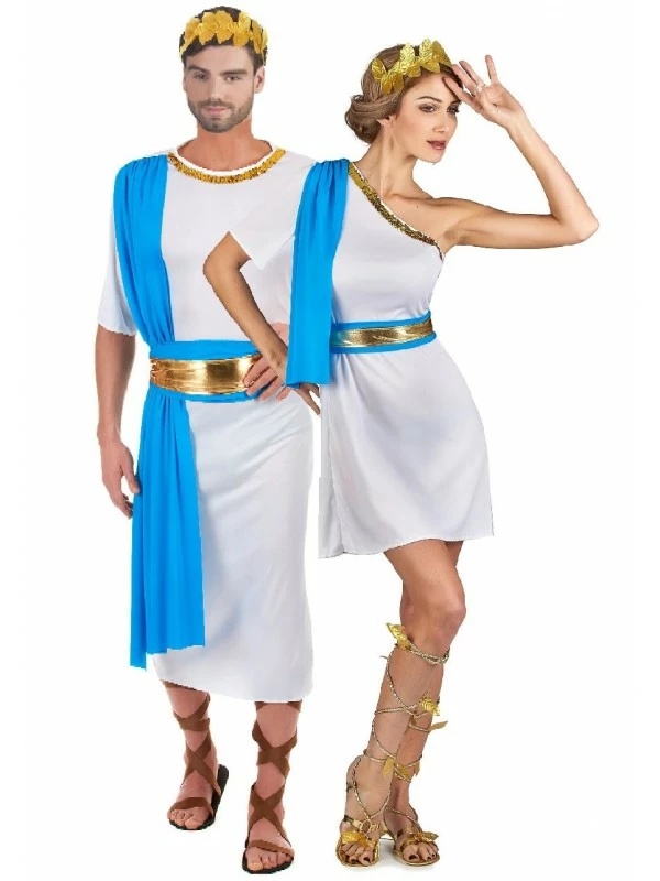 Vous voulez une tenue sobre, élégante et efficace pour ma soirée !! Ce déguisement comprend la tunique blanche, l’étole, la ceinture ainsi que la couronne. La toge de couleur bleue est cousue sur une des deux épaules pour vous laisser libre de vos mouvements. La ceinture bleue et or se noue autour de la taille et vous n’oublierez pas la couronne qui représente la fameuse branche d’olivier. On vous offre même la possibilité d’être assorti à Madame !