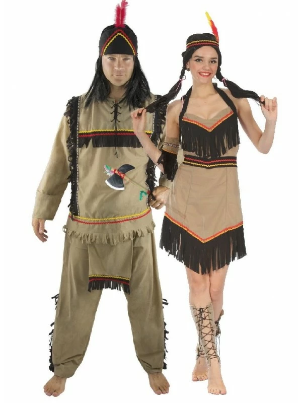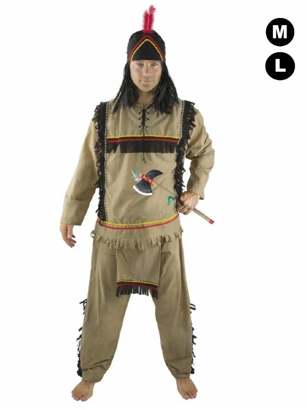Ce costume de pirate comprend la tunique beige assortie au pantalon qui lui a un pagne fixé à la ceinture. Des franges noires sont disposées sur les côté du pantalon et sur la poitrine. Ne vous reste plus qu’à placer le bandeau à plume sur votre tête.